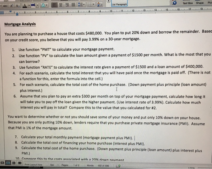 A. making a down payment of 10 percent instead of 20 percent B. obtaining a mortgage interest rate of 9 percent instead of 8 percent C. obtaining a 15-year mortgage instead of a 30-year mortgage D. making larger deposits to the escrow account E. obtaining an interest-only mortgage. 32. (p. ... Retrieve Document